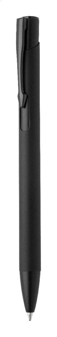 Długopis z recyklingowanego aluminium z gumowaną obudową i dopasowanymi kolorami. Z niebieskim wkładem.