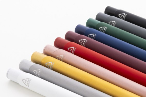 Długopis z recyklingowanego aluminium z gumowaną obudową i dopasowanymi kolorami. Z niebieskim wkładem.