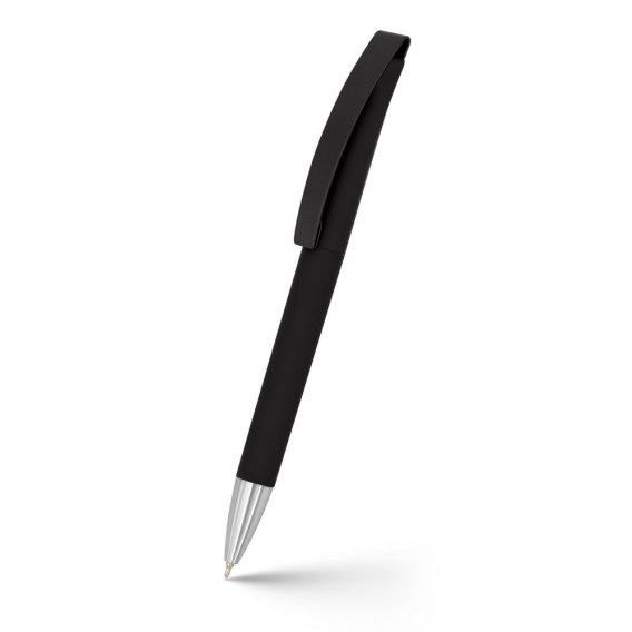Długopis z ABS z szerokim aluminiowym klipem do grawerowania, wkład półżelowy w kolorze niebieskim w komplecie, włączanie typu "twist"