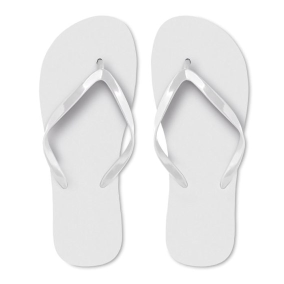 Plażowe japonki z podeszwą z polietylenu i paskiem z PVC. Dostępne w dwóch rozmiarach, M (36-39) i L (40-43).