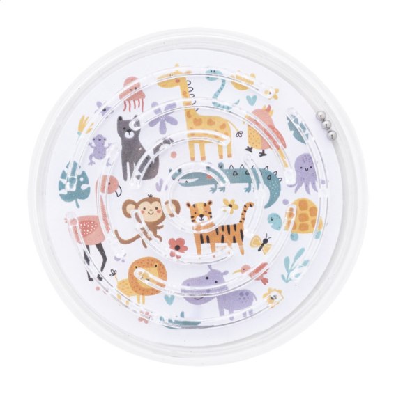 Okrągła gra labiryntowa z recyklingowanego PS z trzema metalowymi kulkami. Z personalizowaną, full kolorową wkładką papierową. Cena zawiera nadruk cyfrowy po obu stronach. Min. ilość: 100 szt.
