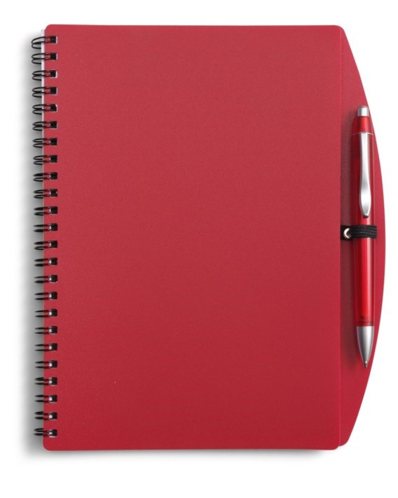 Notatnik (ok. A5, 65 kartek w linie) z długopisem, spiralne bindowanie