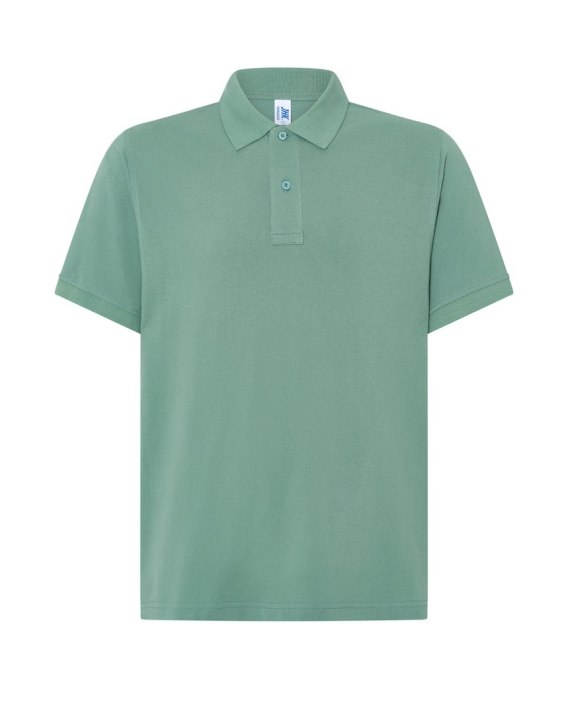 Polo męskie z krótkim rękawem. Zapinane na dwa guziki. Kołnierzyk i rękawy wykończone dzianiną 1x1. Boczne rozcięcia. 100% stabilizowana bawełna czesankowa pique.