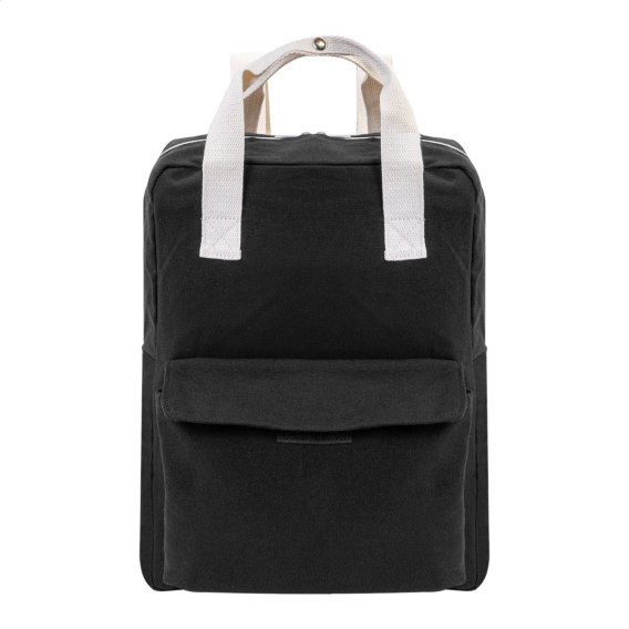 Plecak z płótna z recyklingu z główną komorą zapinaną na zamek, wyściełaną przegrodą na laptopa (13") i przednią kieszenią zapinaną na rzep. Wykonany w 70% z bawełny z recyklingu i w 30% z poliestru RPET. Z charakterystyczną metką z bawełny z recyklingu.