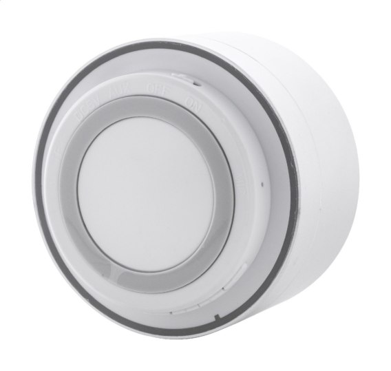 Głośnik bezprzewodowy z recyklingowanego aluminium z metalową siateczką, diodą LED na spodzie i akumulatorem (300 mAh). Z funkcją głośnomówiącą i odtwarzaniem plików MP3 z karty micro SD. W zestawie kabel USB do ładowania.