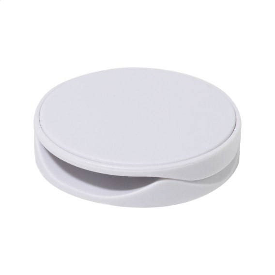 Okrągły uchwyt na telefon wykonany z recyklingowanego tworzywa ABS z samoprzylepną podstawą.